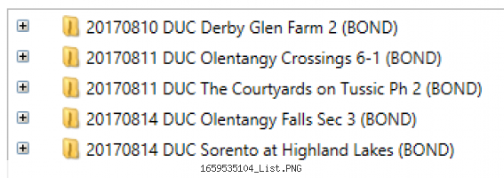 Following the convention allows the project list to be sorted and filtered with a few key words. A filter can be applied using the button located in the Navigator window on the Projects tab. Clicking the button opens a dialog box that allows you to create a custom filter. On possible example is to enter "2017%(BOND)" in the Project Name Contains textbox.
