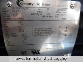 Scioto Hills - Aeration Blower Motor #1 ID Tag