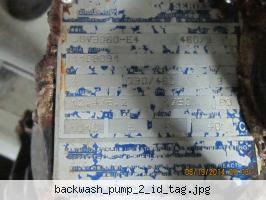 Scioto Reserve - Backwash Pump #2 ID Tag